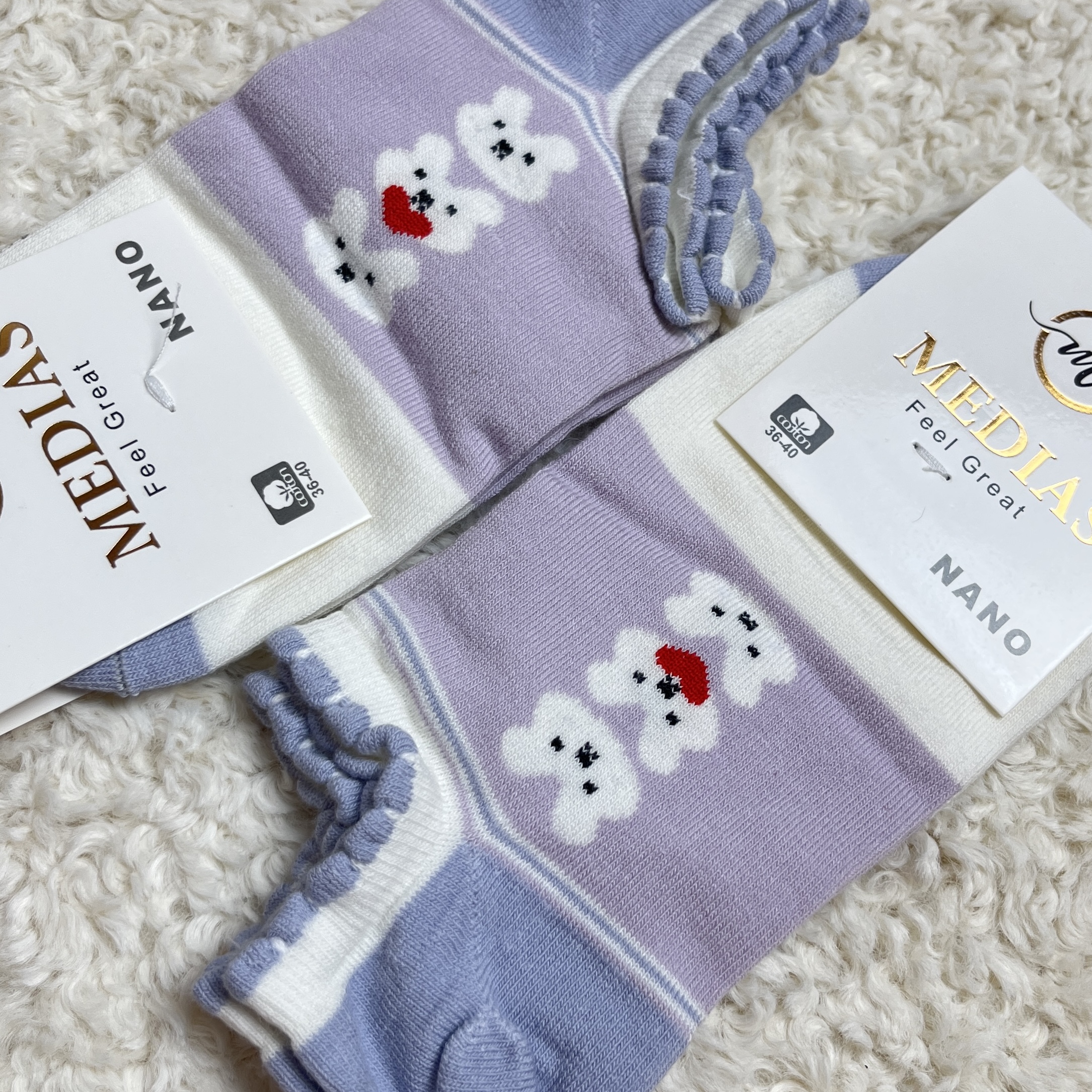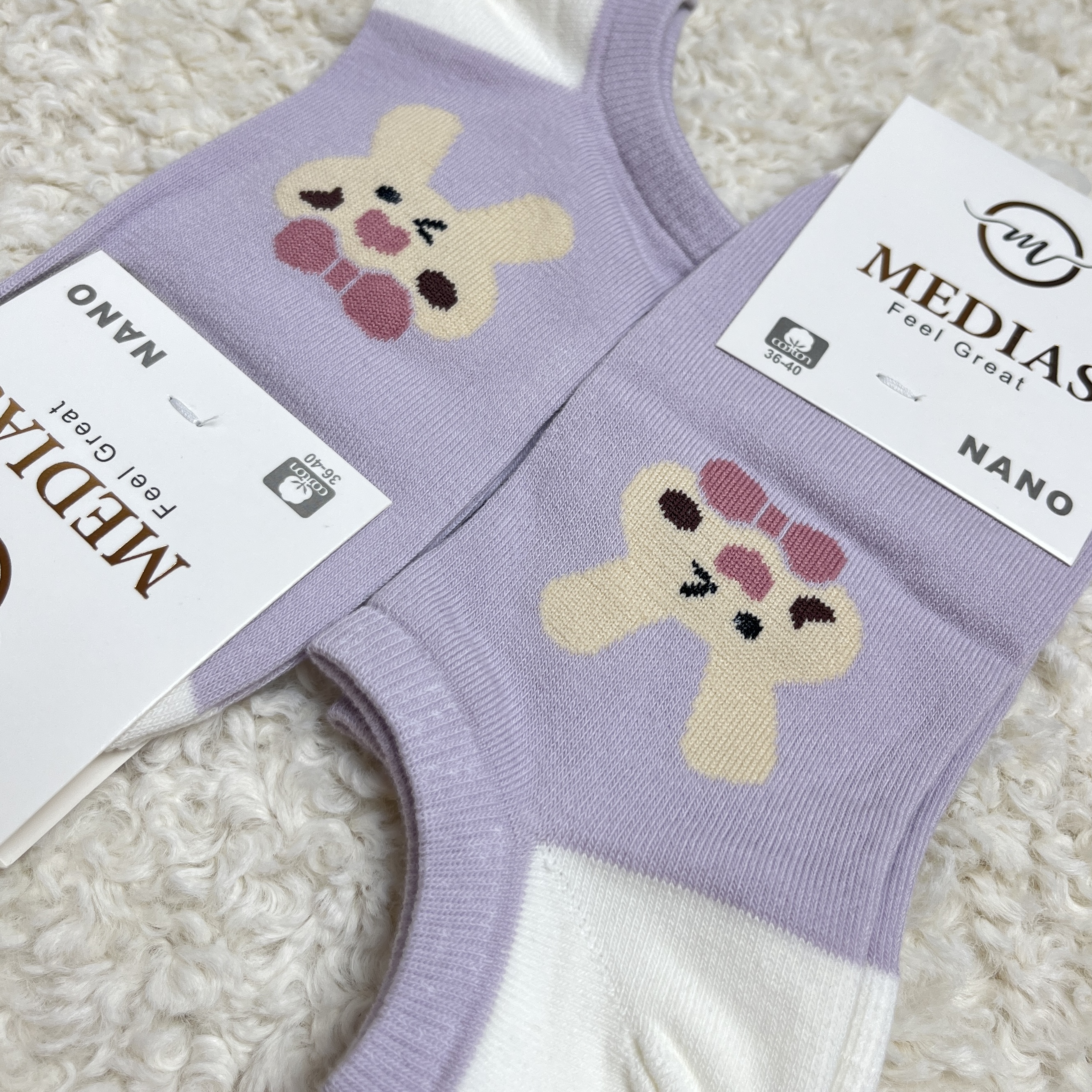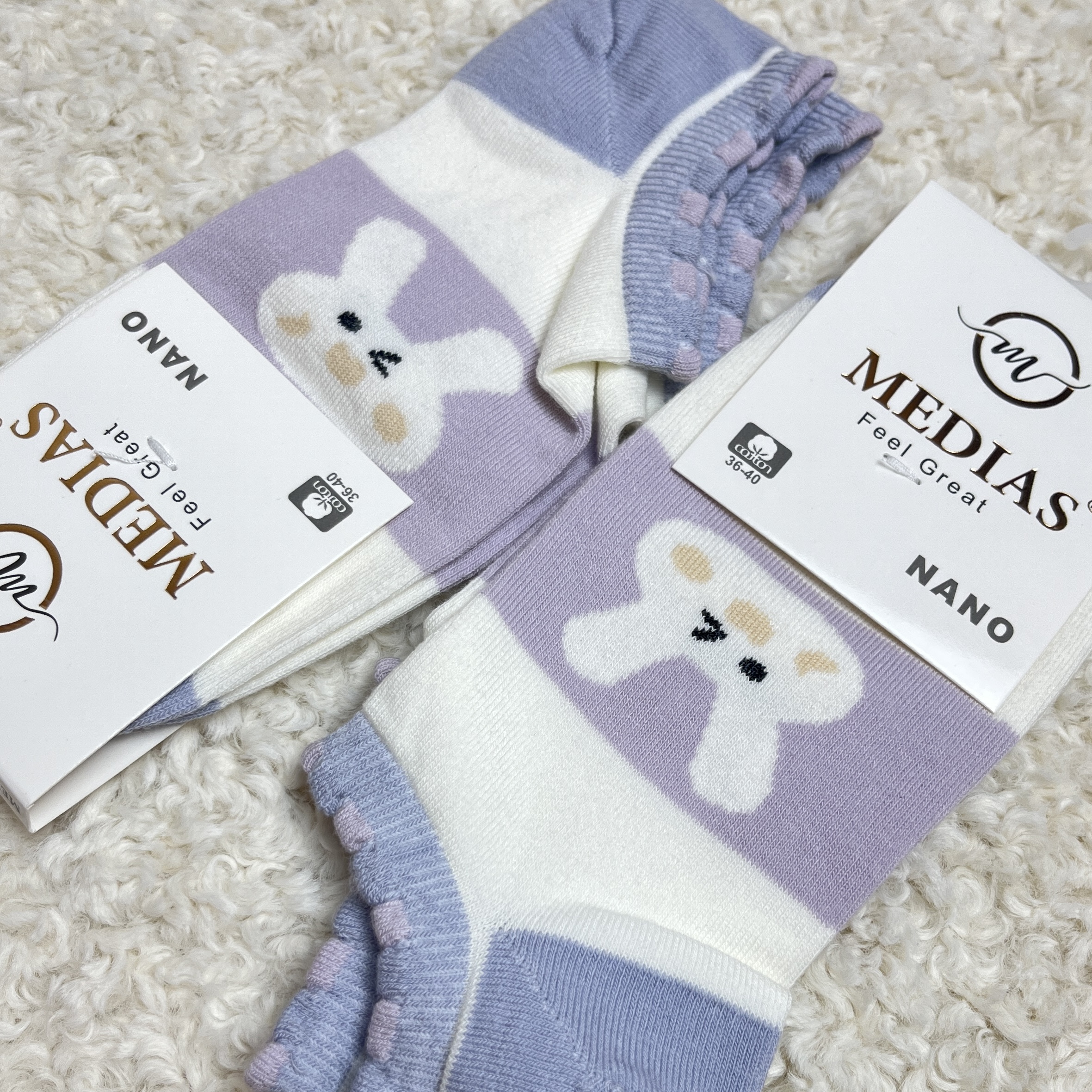 جوراب فانتزی زنانه بنفش و سفید طرح خرگوش