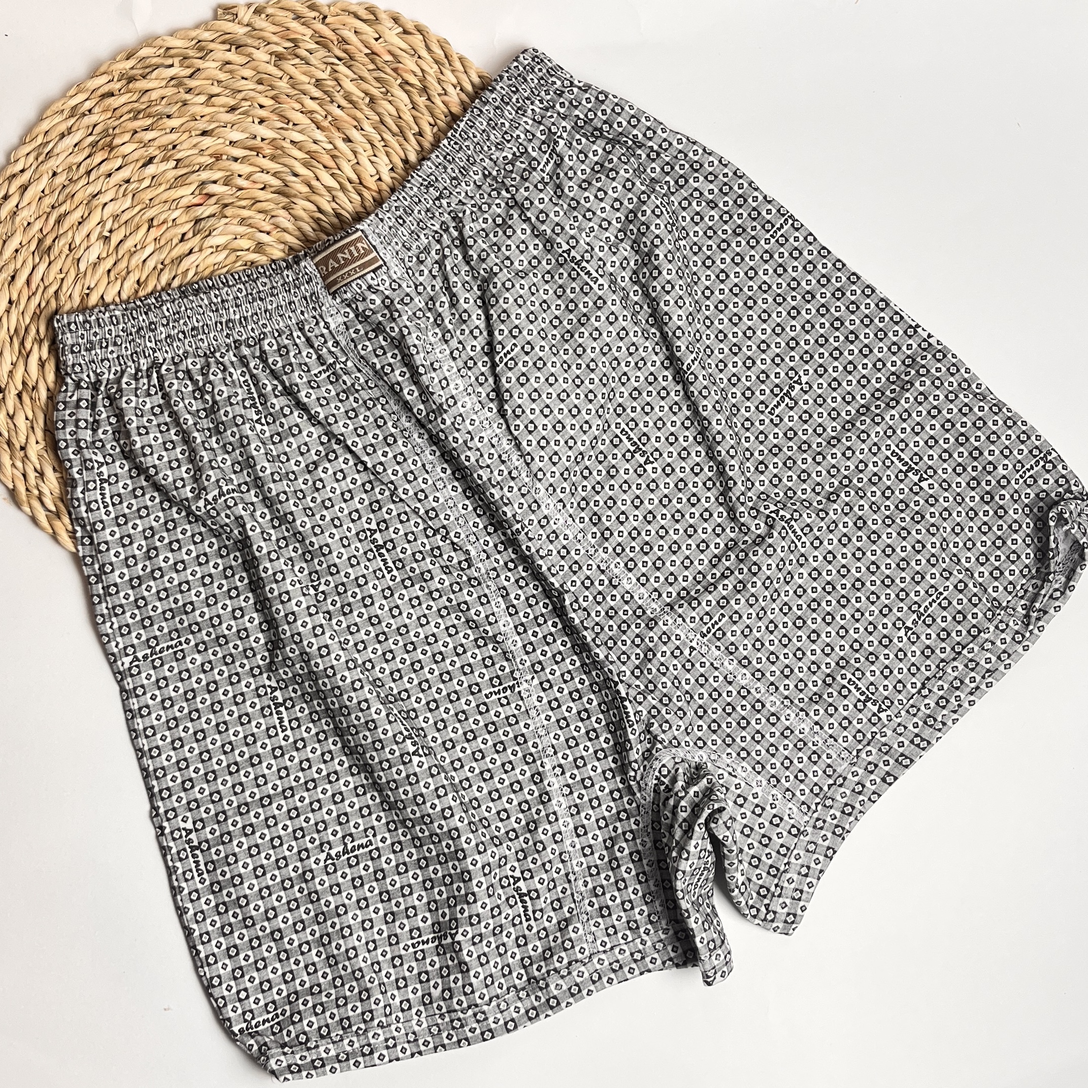شورت پادار مردانه نخی چاپی طرح لوزی/ سایز XXXL