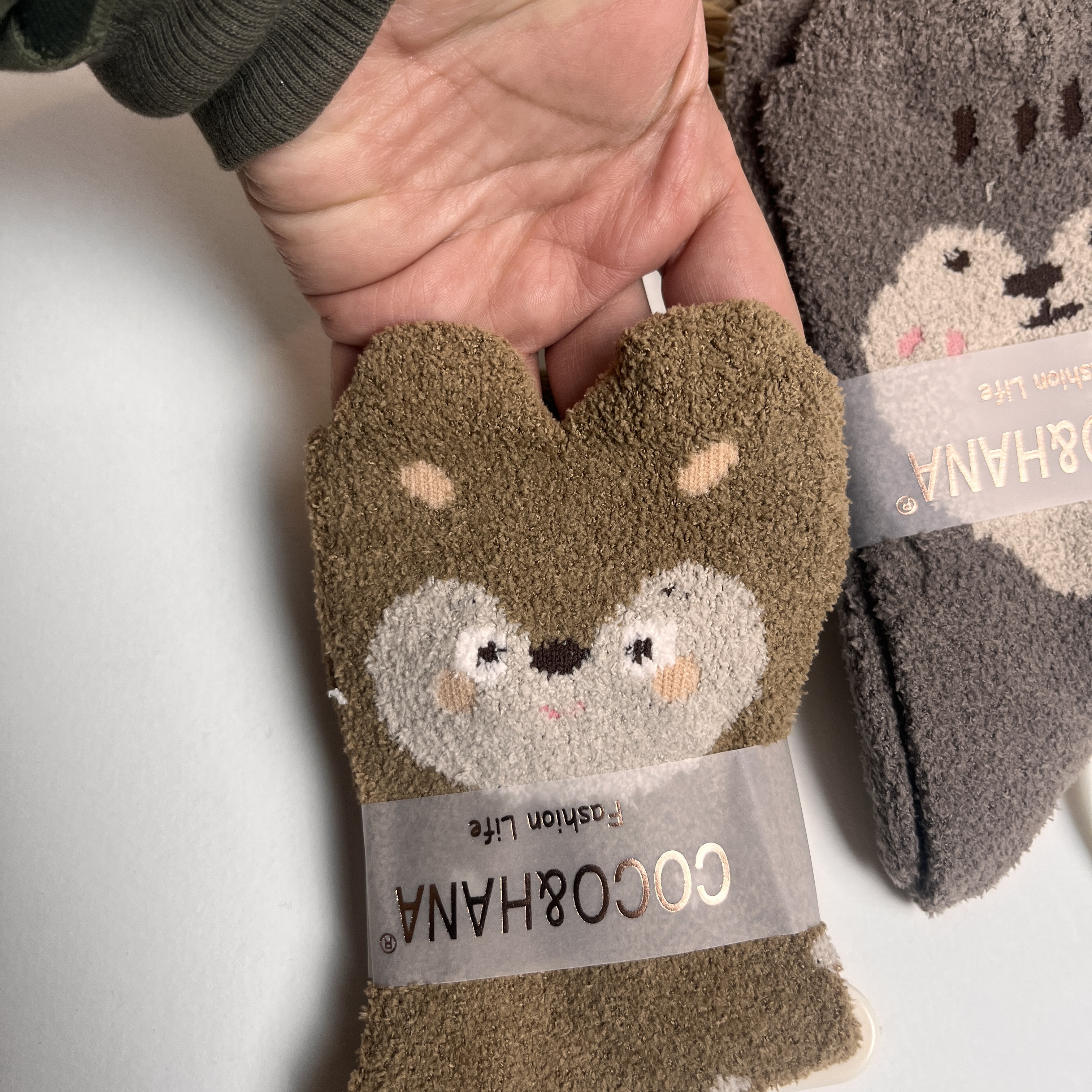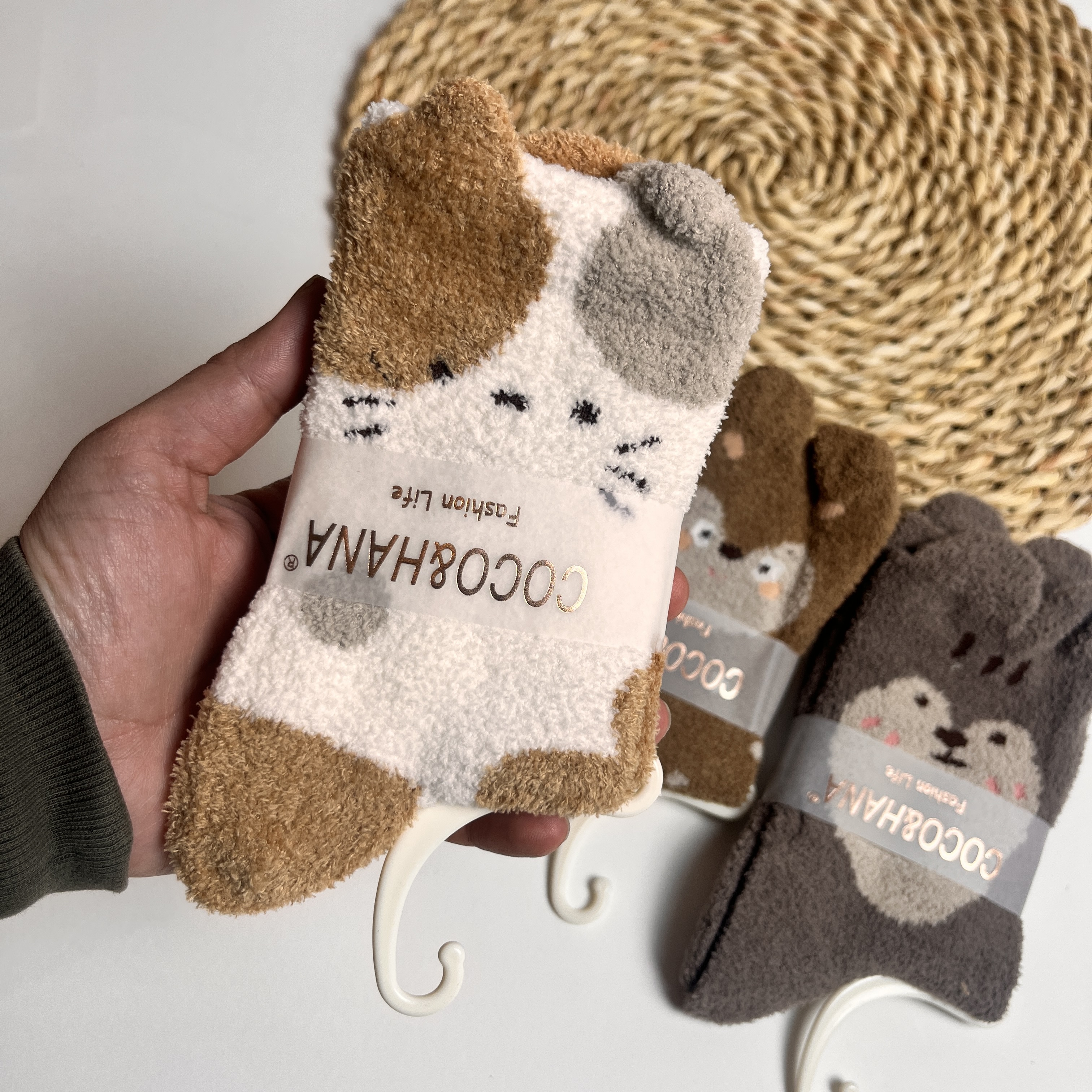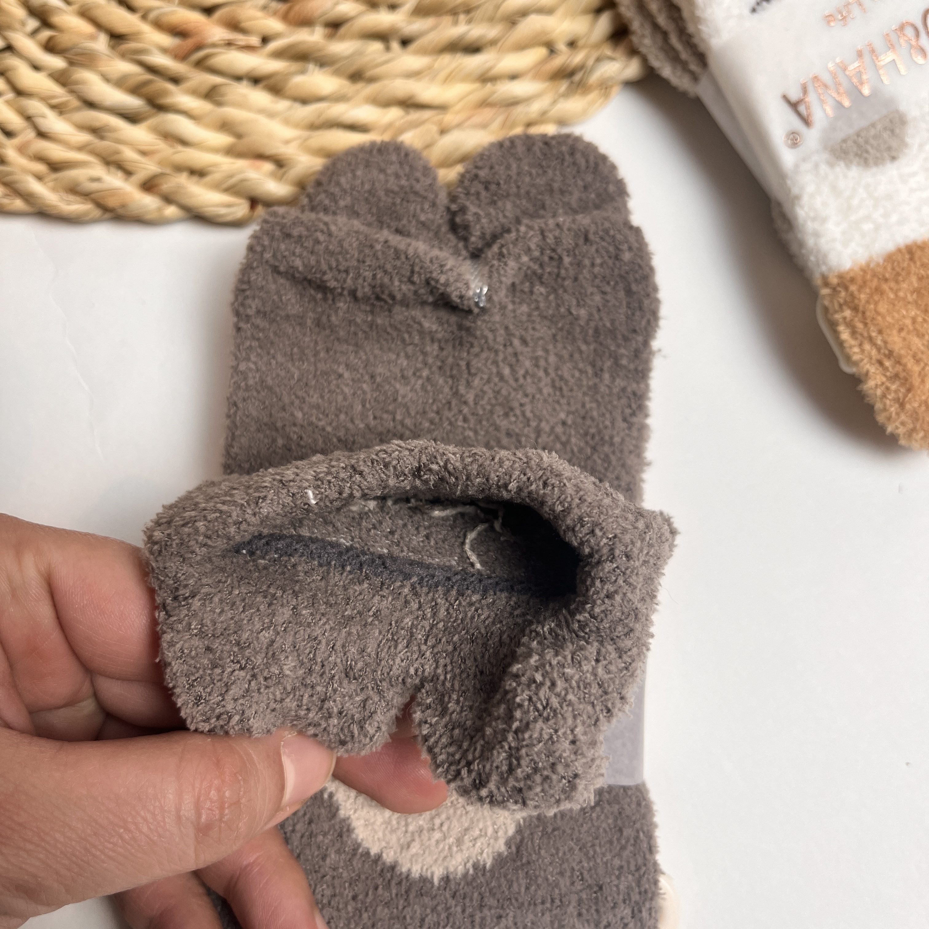 جوراب فانتزی زنانه حوله ای طرح گربه وارداتی